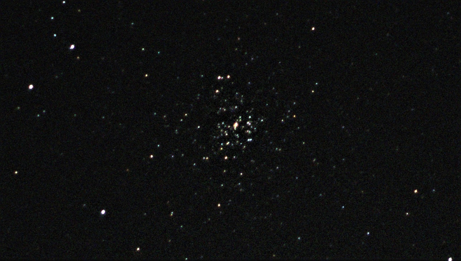 Local Τime 20:00 Greece, Type: open star cluster, Distance: 4511 Light Years, Telescope: Celestron Travel Scope 70/400 Refractor, Skywatcher Alt-Azimuth mount AZ3, Camera ZWO ASI290MC Color, 0.5x Focal Reducer 1.25", SharpCap recording software
